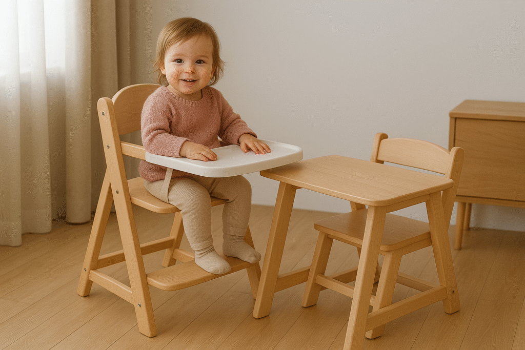 - Descripción: Se ajustan en altura y se convierten en silla evolutiva, creciendo con el niño.