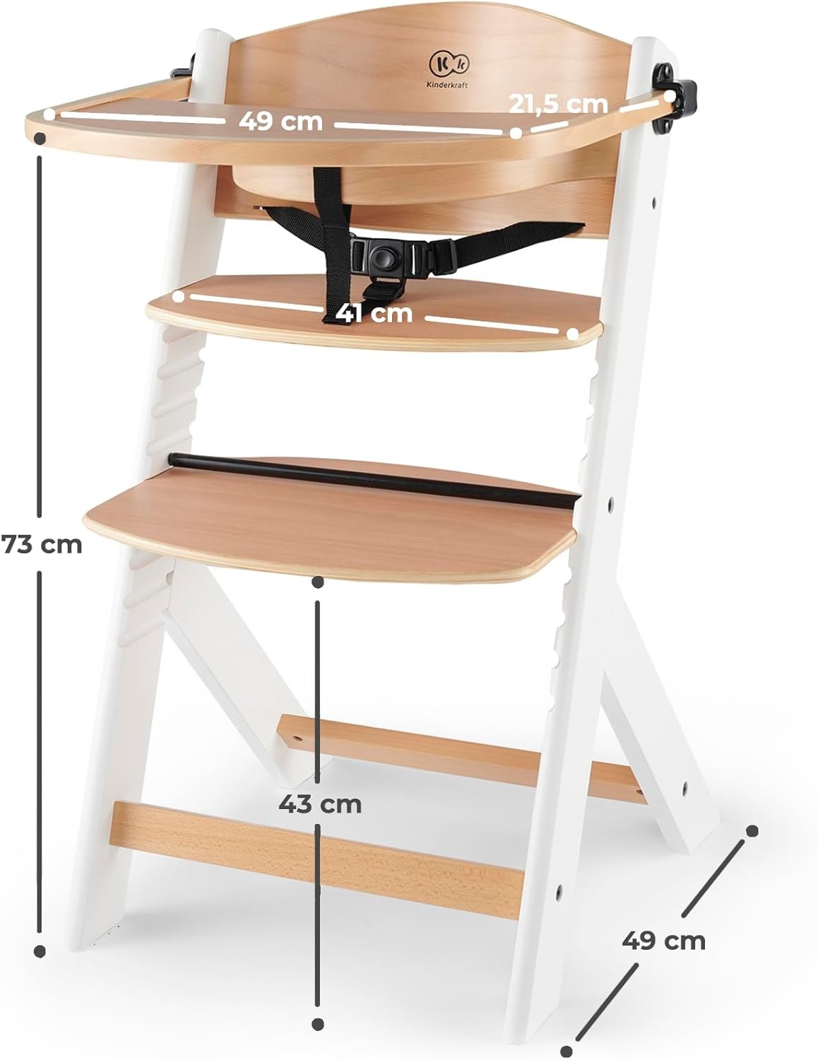 Trona Enock Kinderkraft. Trona de madera por menos de 100€. Trona evolutiva, regulable y ergonómica, con bandeja desmontable y arnés.