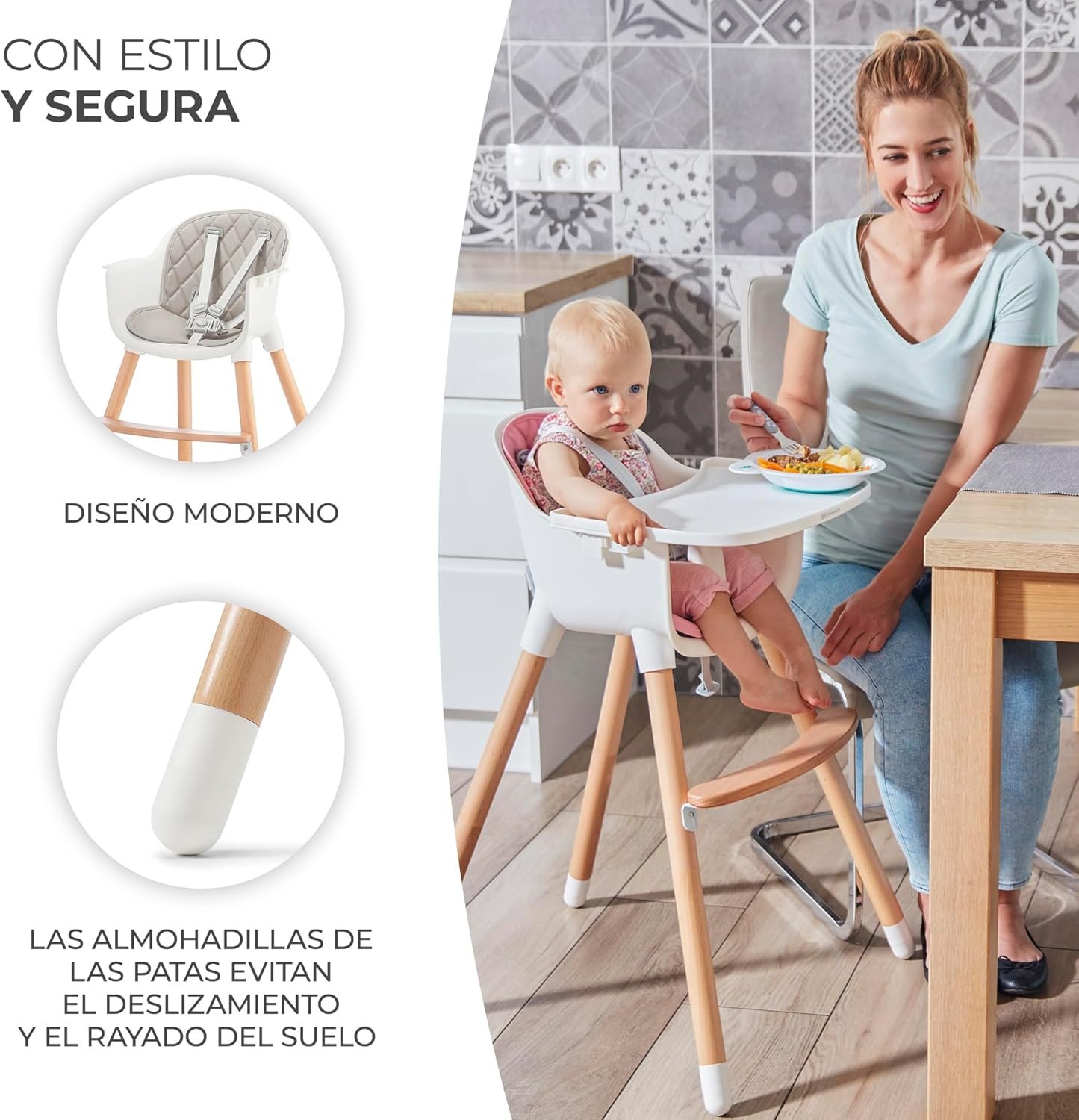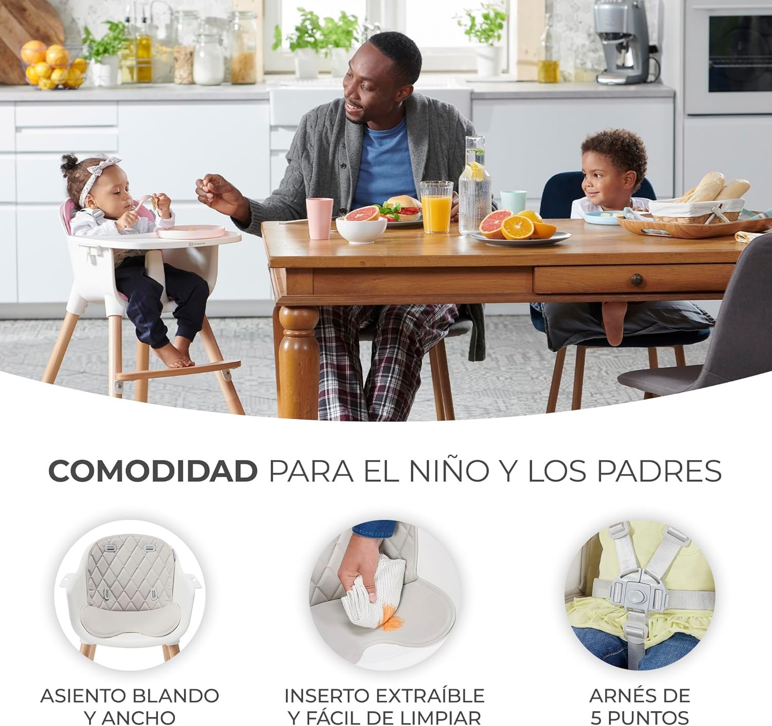 4. Acabado y diseño: es una trona con estética cuidada (hay colores y acabados que la hacen atractiva para quien busca algo más elegante que la típica trona blanca). Los comercios la listan como producto con buena relación entre apariencia y funcionalidad.